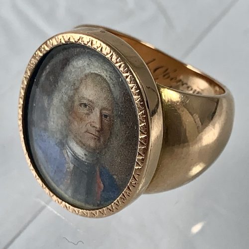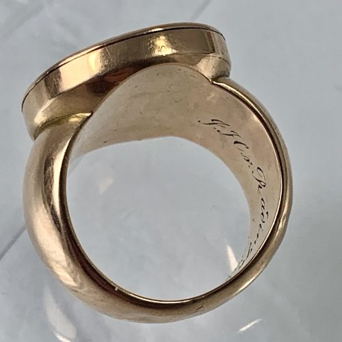 Antique, ca 1790 hollow constructed gold ring with the inscription ” IFC Radingh ObercomendantZu Riga, geb. a. 15 Nov 1657.”