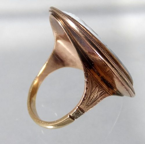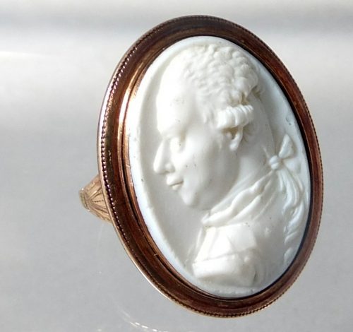 English ca 1780 engraved red gold mounted glass cameo portrait ring of possibly King Gustav Adolfus III of Sweden.