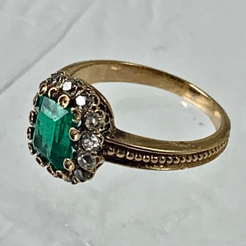 Gold ring with diamonds and emerald